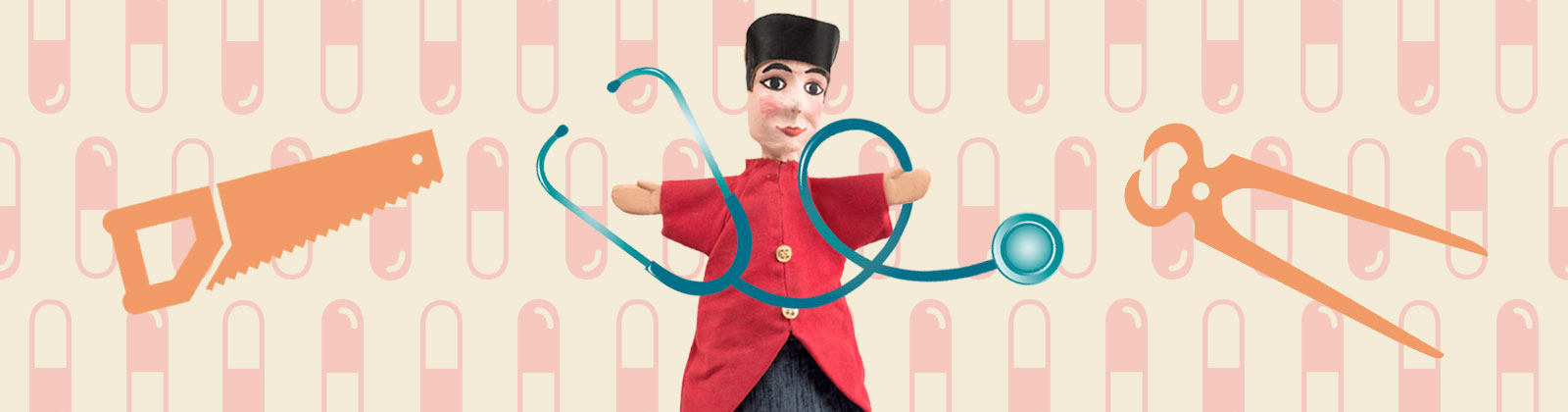 Le personnage de Guignol, imaginé au lendemain de la Révolution française est une marionnette tout à la fois emblématique et fort mal connue. Entre Arlequin et Pierrot, son répertoire est de tradition orale, collecté par quelques fins connaisseurs. Aux pièces lyonnaises s’ajoutent des pièces de parodie dont celle de « Guignol médecin », librement adaptée d’un texte du Guignol des Champs-Elysées de 1889.